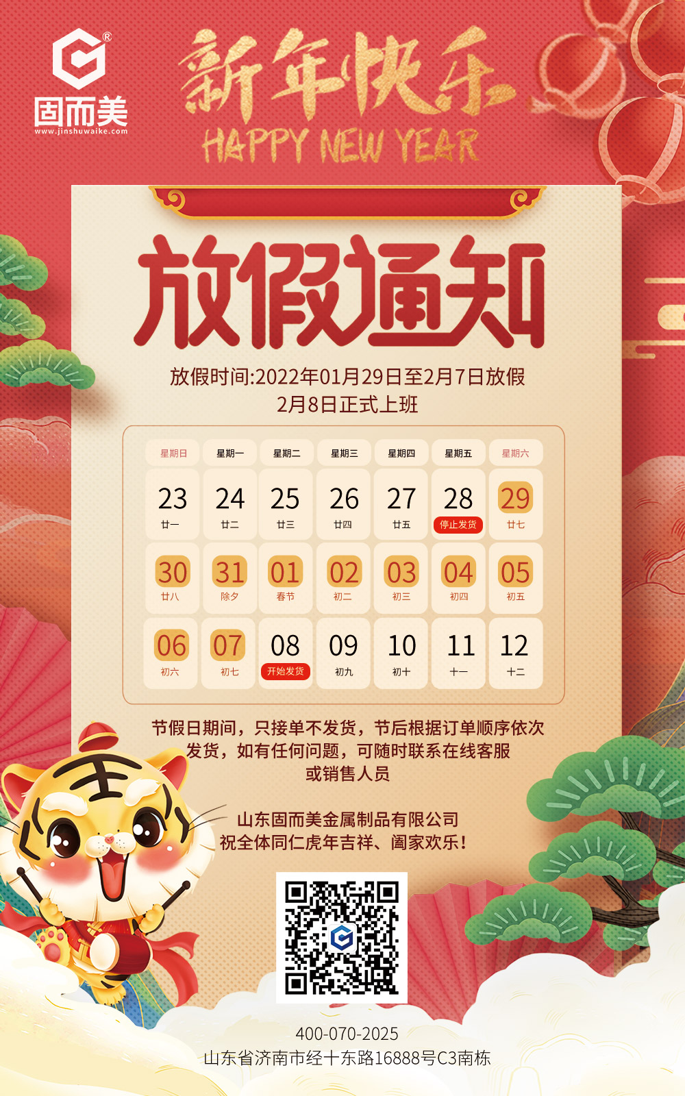 山東固而美春節放假通知